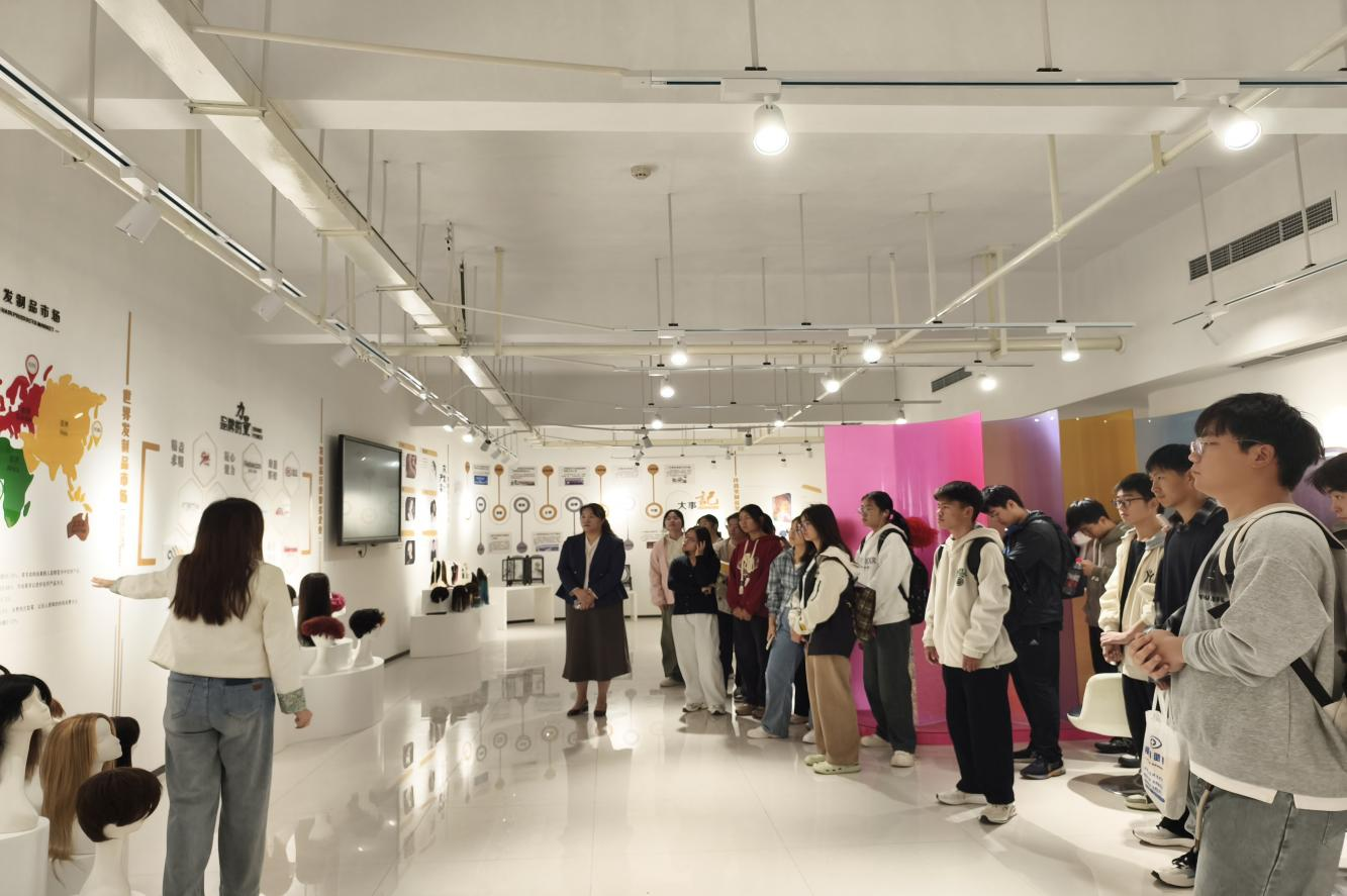 在发制品展厅,新生们认真聆听着关于发制品的历史、文化以及生产工艺等方面的介绍。从传统工艺制作的假发,到时尚元素的新型发制品,每一件展品都在诉说着发制品行业的发展与变迁。通过这些介绍,学生们对瑞贝卡学院的发展历程、定位、规模及其提供的服务与设施有所了解。大家了解到众多优秀的学长们通过创办发制品跨境电商公司成功创业,把许昌特色“假发”销往国外,成为了行业内的佼佼者。